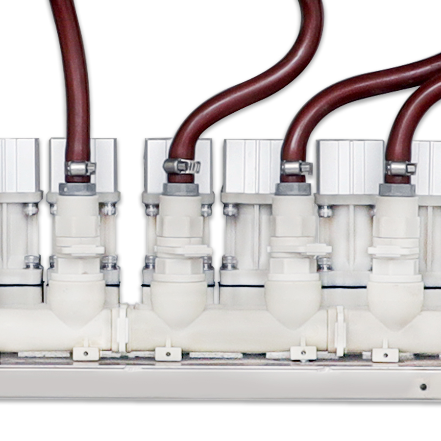 紧凑型 C 型免维护分配器系列采用精巧省空间设计,适用于中大型商业及工业洗衣房的加料。该设备可兼容最多 8 台工业洗涤设备,默认支持 7 种化料,搭载专利款中型 MWH-15 免维护隔膜泵。与迷你 D 型产品不同,本系列配备立式中功率电机,耐压值最高可达 4.5 Bar,是有中等投加量需求、中短距离输送要求的生产企业的...
