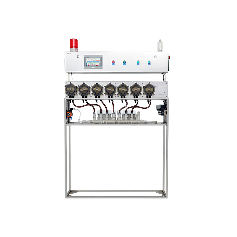The RDB-7B series is a laundry dispenser with a high-flow adaptive peristaltic pump as its dosing device. It comes standard with a quick-connect flushing manifold, spring-free corrosion-resistant pneumatic valves and an intelligent pressure relief module, and can accommodate up to 8 industrial/commercial washing machin...