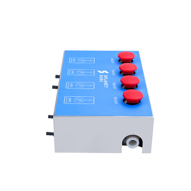 To meet market demand for diluting chemicals like disinfectants, detergents and water treatment agents, the Splaney four-channel precise ratio dilution system (XSQ-4 series) is launched. It inherits the XSQ-1 series’ modular design, enabling simultaneous dilution of up to 4 chemicals for more user options.Unlike traditional dilution systems, the XSQ-4 greatly optimizes structural design to cut installation space. Each chemical has an independent dilution channel to avoid cross-interference. Users can freely customize each channel as low-flow (bottle) or high-flow (drum), with optional backflow prevention and dynamic filtration.Additionally, the XSQ-4 has a stainless steel panel customizable with a dedicated logo to boost corporate branding.