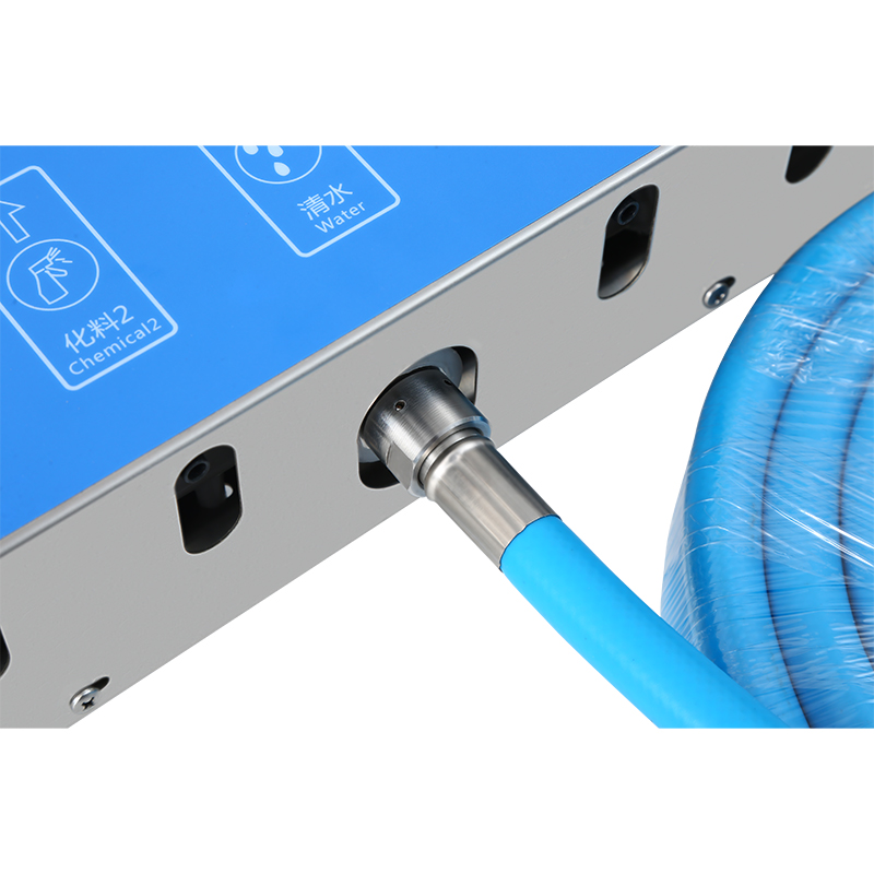 The XSQ-5-S series is a five-channel dilution system with a water gun, featuring 4 independent chemical channels and 1 water channel; it automatically mixes water proportionally with up to 4 chemicals, enabling convenient foam/spray cleaning and water rinsing via the gun to meet customers‘ required disinfection standards. Additionally, each chemical channel of the series has 18 independent dilution ratios, and it is equipped with a corrosion-resistant backflow prevention device and dynamic filtration system to further enhance overall lifespan and applicability.