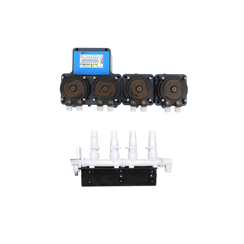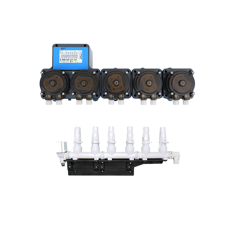 The YDY-MKHD-6B High-Flow Peristaltic Pump Modular Series is ideal for single large/medium commercial washing machines, with flow rates over 1L/min. It supports 2-8 chemicals for broader application flexibility. The high-flow peristaltic pump uses advanced PUM multifunctional guiding roller technology, which provides uniform, adaptive lubrication during squeezing—greatly boosting the pump tube’s wear and corrosion resistance. It also has an LCD color touchscreen system and optional patented quick-connect manifold, enabling one-touch access to status, data and calibration for a more streamlined, efficient user experience.