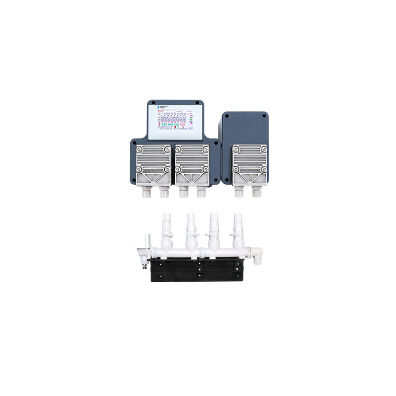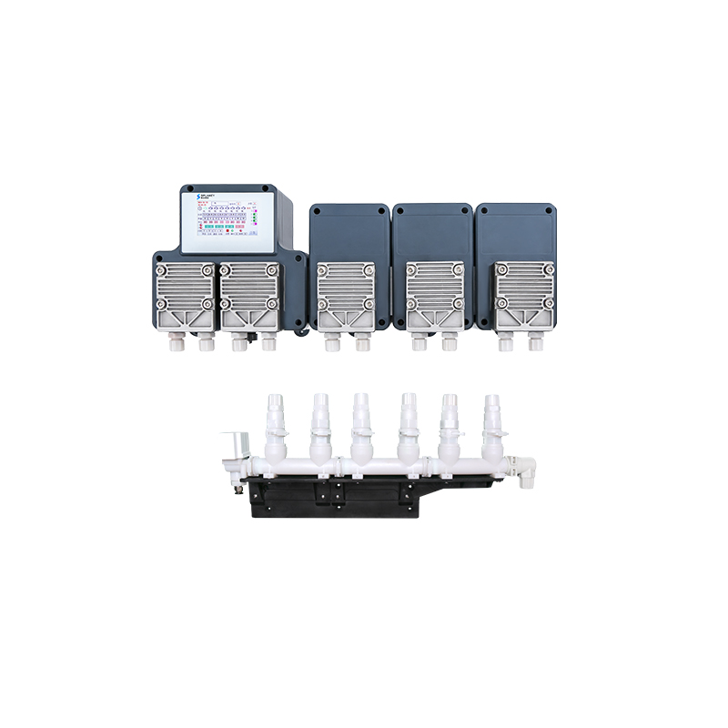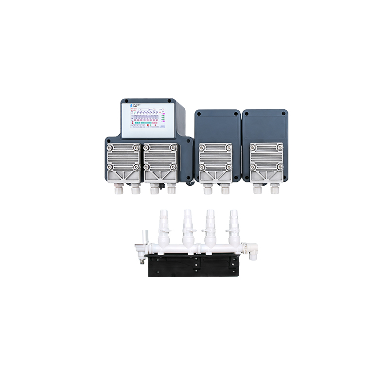 The YDY-MKHF-6B Series is a one-to-one laundry chemical dispenser with maintenance-free diaphragm pumps. With a plug-and-play modular design, it flexibly configures 2-8 maintenance-free diaphragm pump units to meet diverse dosing needs. The MWH-14 Series—industry’s smallest patented maintenance-free square diaphragm pump—has a high-power motor, designed for high-viscosity acidic/alkaline chemicals. No need to replace pump tubing; its diaphragm lasts up to 3 years, ensuring high reliability. Additionally, the modular series offers an optional self-developed patented quick-connect manifold, usable with solenoid valves and wall-mount brackets to boost transmission efficiency.