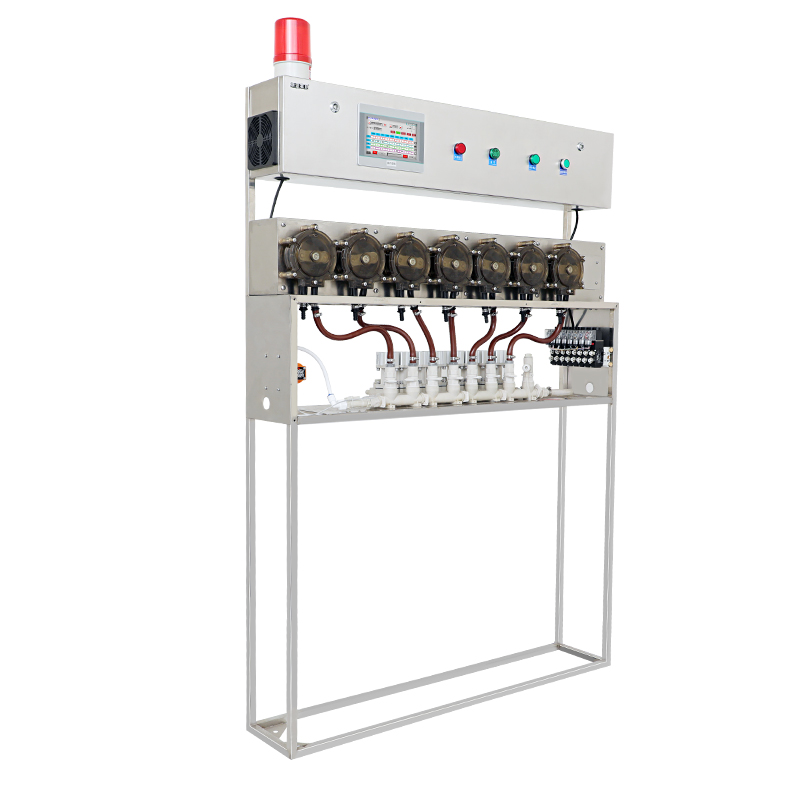 The MWH-XYL-7B maintenance-free tunnel washer series is a high-end intelligent dispensing system for medium/large tunnel washers. It comes standard with 7 MWH-18 high-flow, pressure-resistant, maintenance-free diaphragm pumps (each chemical has an independent pump head). With advanced delayed flushing and air-blow tech...